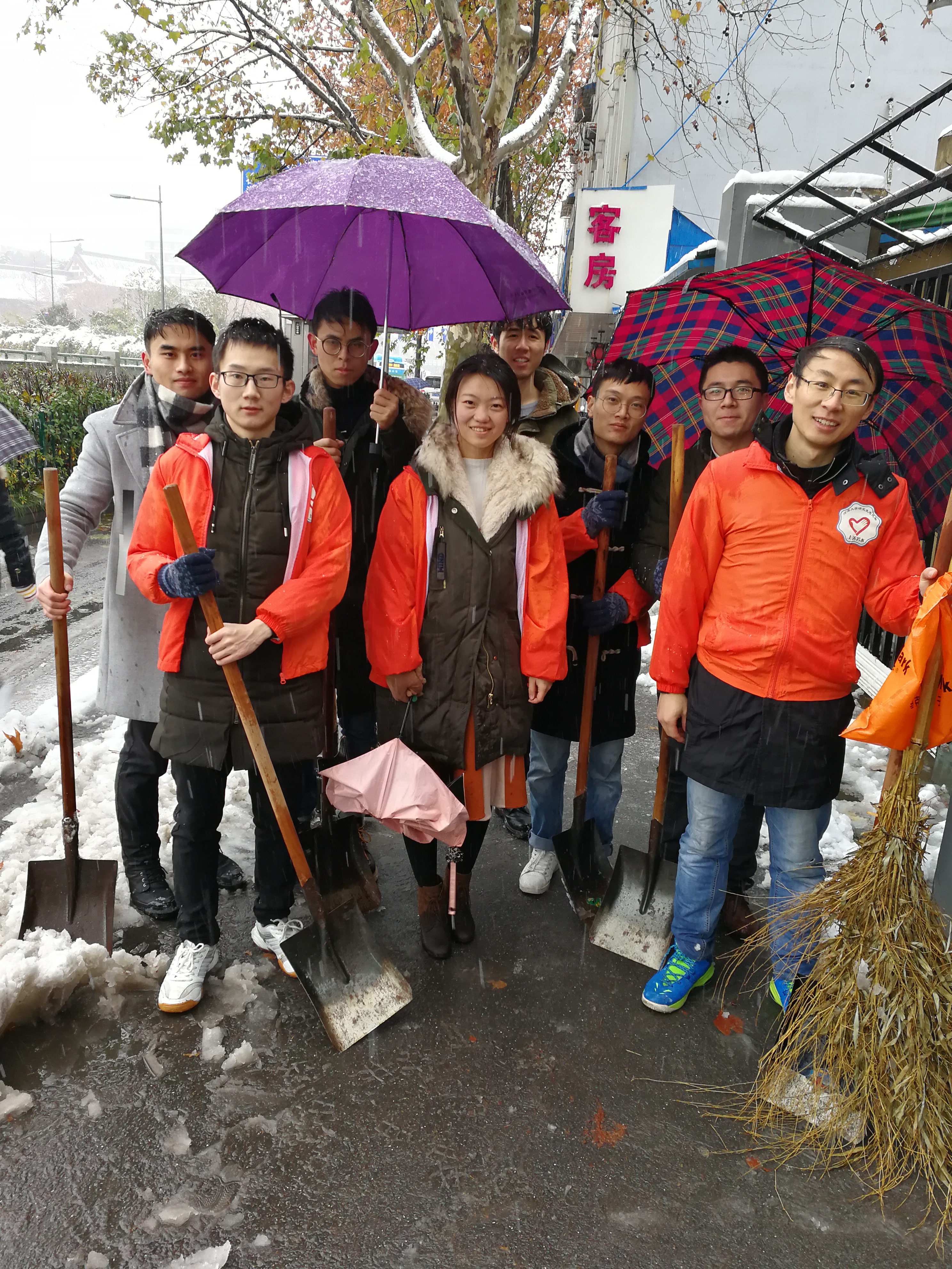 为尽快消除积雪给学校道路交通带来的诸多不便,响应学校的号召,研会召集了一部分成员组成道路清雪志愿小分队,带着铁锹等扫雪工具,对河海大学2号门外一段道路展开清扫。虽然天气严寒,雪水浸湿了所有人的鞋袜,但是大家干劲十足,分工合作目标明确,清雪动作迅速敏捷,过程中也充满了欢声笑语,大家乐在其中,最后仅用不到50分钟就顺利完成了清雪目标。本次除雪活动,大家都亲身体验了助人为乐的感觉,不仅为师生的出行安全作出贡献,也展现了大家的团结协作和无私奉献精神,研会成员会继续发扬这种精神,让文明爱校之风在研会传播开来。