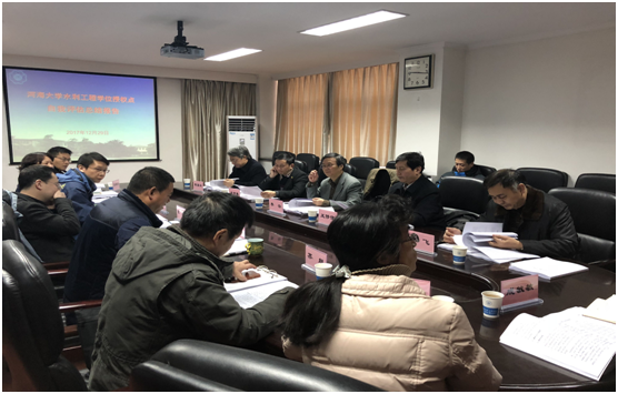 2017年12月29日上午,葡京娱乐场 组织召开了水利工程博士学位授权点和水利工程硕士专业学位授权点合格评估专家评审会。南京水利科学研究院李云教授级高工、南京大学吴吉春教授、东南大学王修信教授、南京工业大学陈国兴教授、中设设计集团股份有限公司陆飞教授级高工等5位专家应邀对两个学位授权点进行了评估。研究生院陈达副院长、水文水资源葡京娱乐场 杨涛院长、李国芳副院长、葡京娱乐场 陈毓陵书记、方国华副院长、港口海岸与近海工程葡京娱乐场 张继生副院长及各学科导师代表参加了会议。会议由杨涛院长主持。