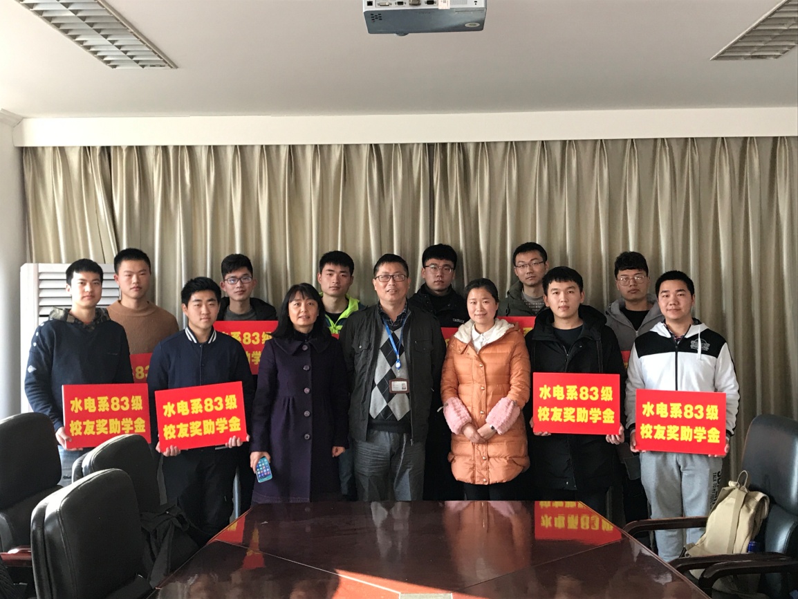 “水电系83级”校友奖助学金,由水电系83校友出资,用于资助品学兼优的水工专业本科生,计划每年资助10人,每人1000元。(刘金凤)