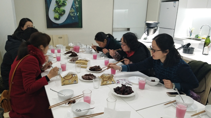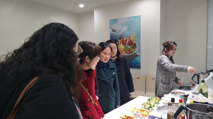 部分女教工来到长江路口的艾尚天地美善品体验店,体验了德国生产的多功能锅做的各种菜品。