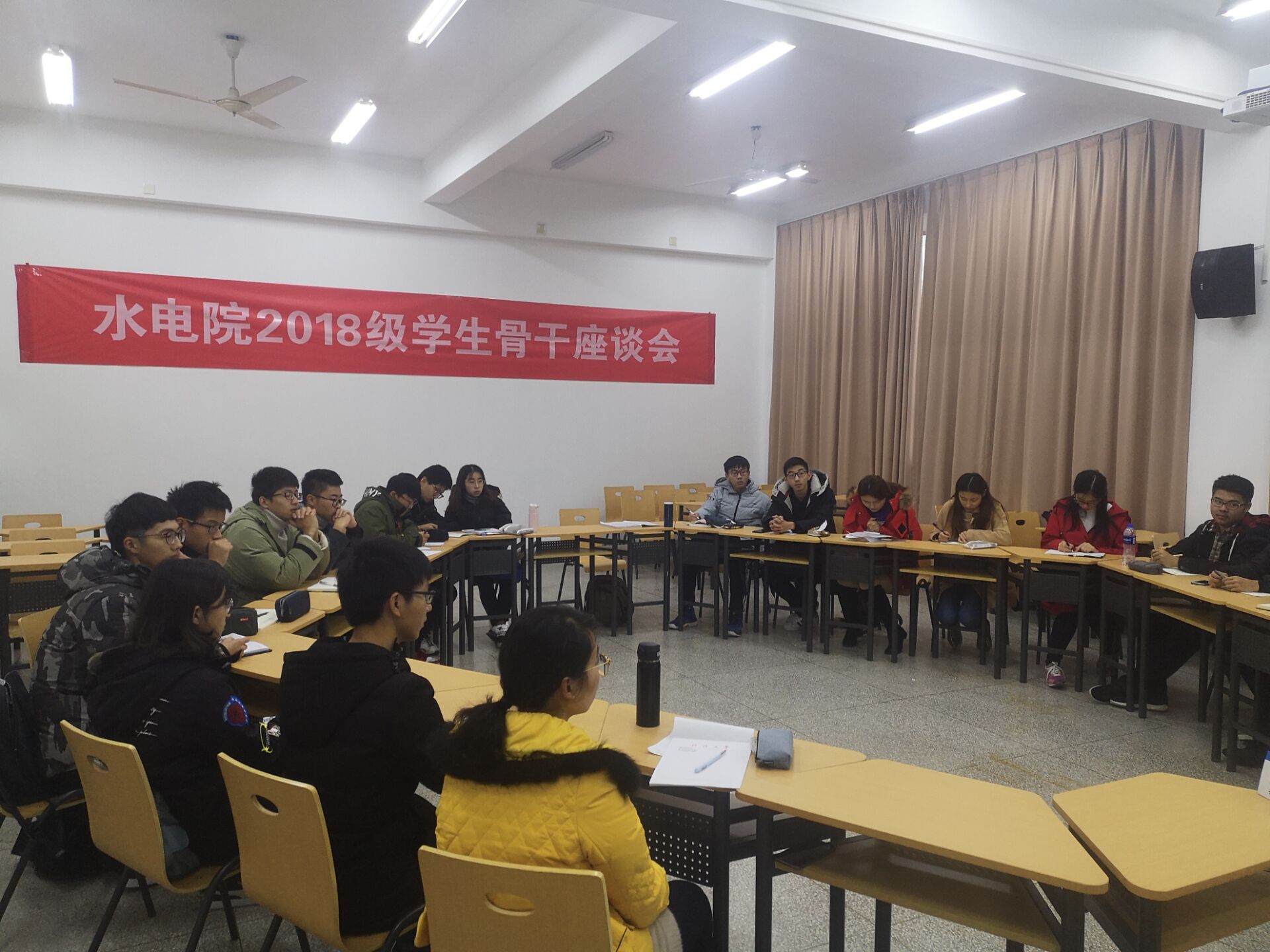 126日,葡京娱乐场 举办2018级学生干部座谈会。院党委副书记戴玉珍、2018级辅导员姜帆和2018级年级、班级主要学生干部参加会议。