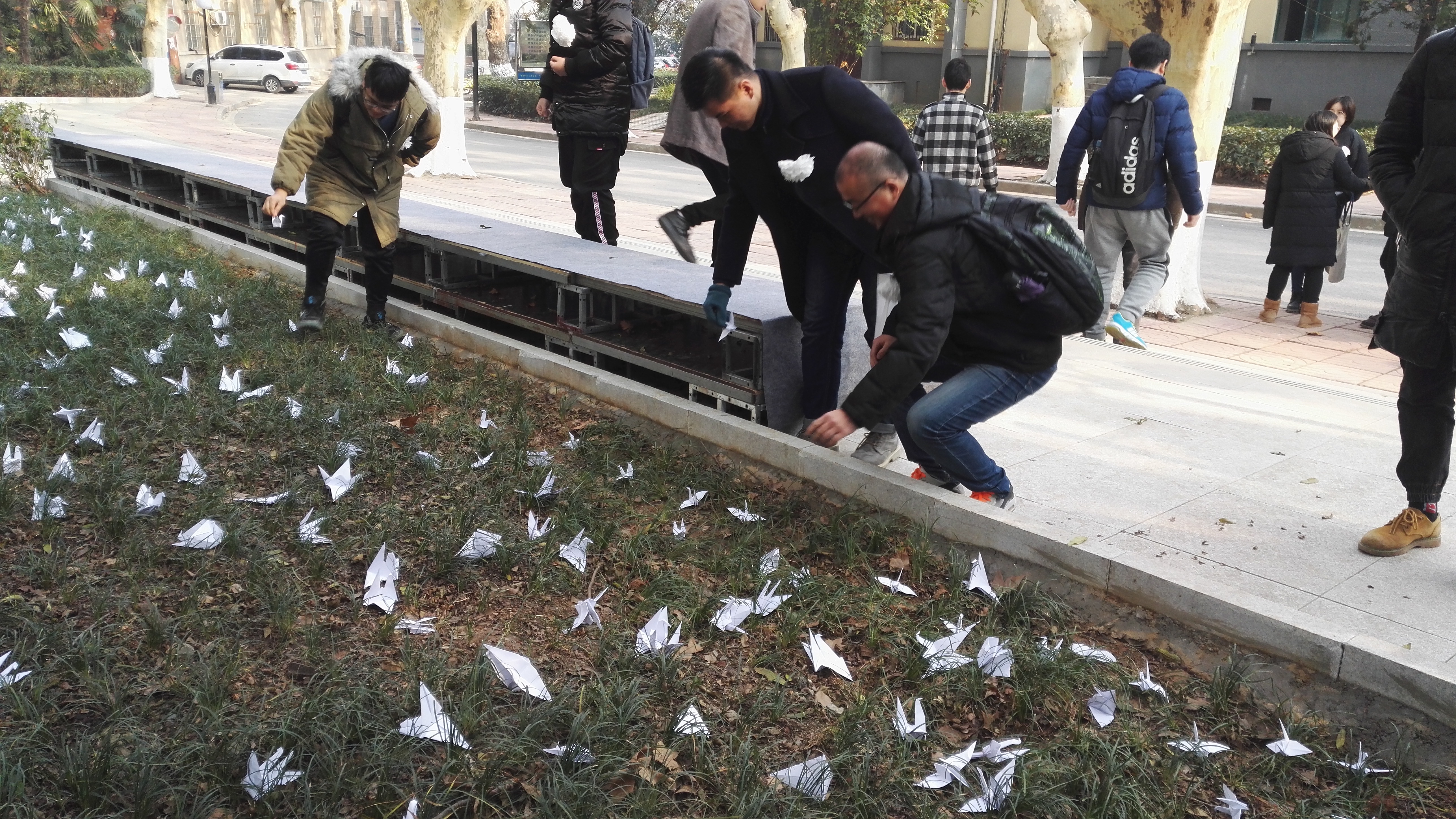 今年是第五个“南京大屠杀死难者国家公祭日”,为了缅怀先烈,牢记侵略战争给人民造成的深重灾难,珍爱和平,通过折纸鹤、做纸花、碑前哀悼、观看《南京大屠杀真相》纪录片等活动来使同学们感受中华民族曾遭受的苦难,勿忘国殇、铭记历史、珍爱和平,鞭策党支部的各位党员无论是在学习还是工作中,都能奋发进取,有所作为,为中华民族伟大复兴而不懈奋斗。(笪步源)