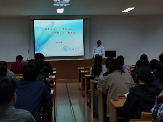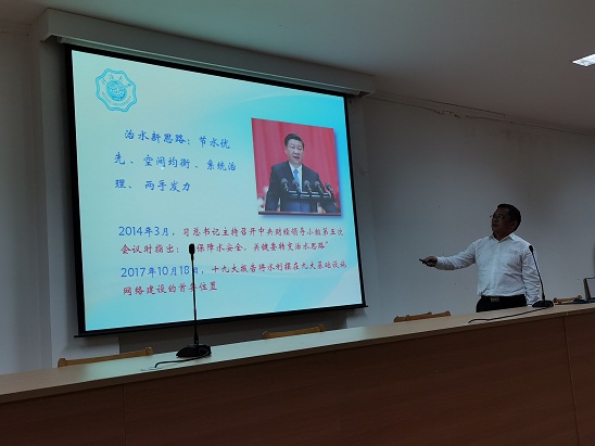 10月23日晚,葡京娱乐场 党委书记任旭华给全院师生党员代表上了题为《凝聚新共识,引领新征程,践行新时代治水新思想》的党课。