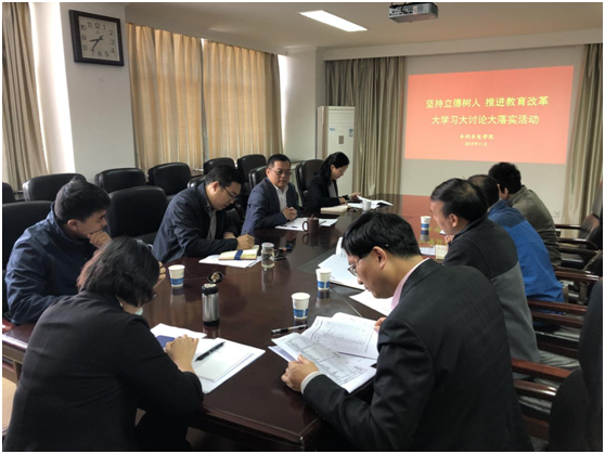 11月11日,葡京娱乐场 在水电馆329会议室召开“坚持立德树人、推进教育改革”大学习大讨论大落实活动交流会,葡京娱乐场 党委书记任旭华、副书记戴玉珍、部分系所负责人及教师代表参加了会议。会议由张继勋副院长主持。