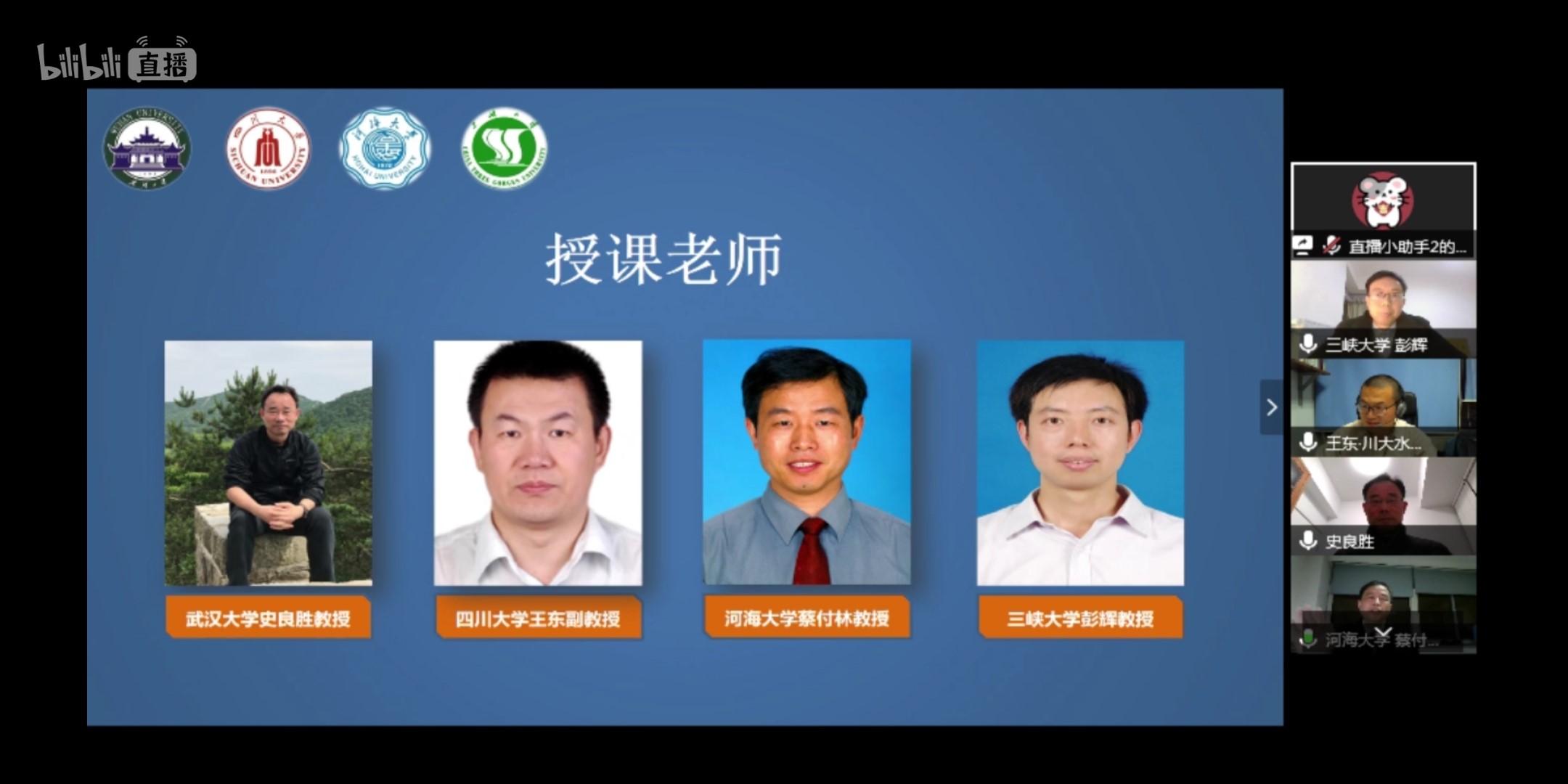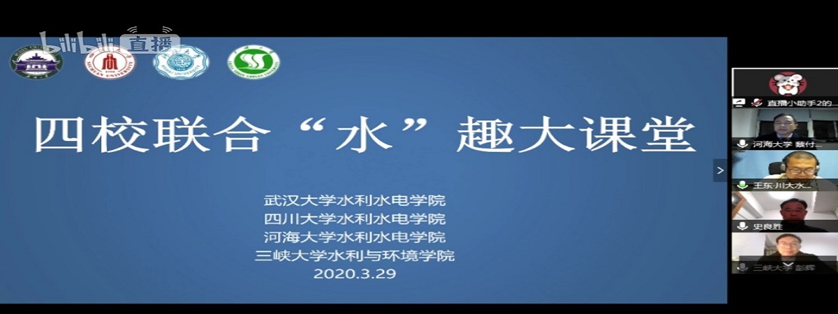 3月29日,在第三十三届“中国水周”期间,葡京娱乐场(中国)官方网站 、武汉大学葡京娱乐场 、四川大学葡京娱乐场 、三峡大学水利与环境葡京娱乐场 4所水利院校共同打造“水趣大课堂”,通过B站直播邀请全国水利类高校大学生同上一节水利“云”课堂。河海大学蔡付林教授、武汉大学史良胜教授、四川大学王东副教授和三峡大学彭辉教授开讲。