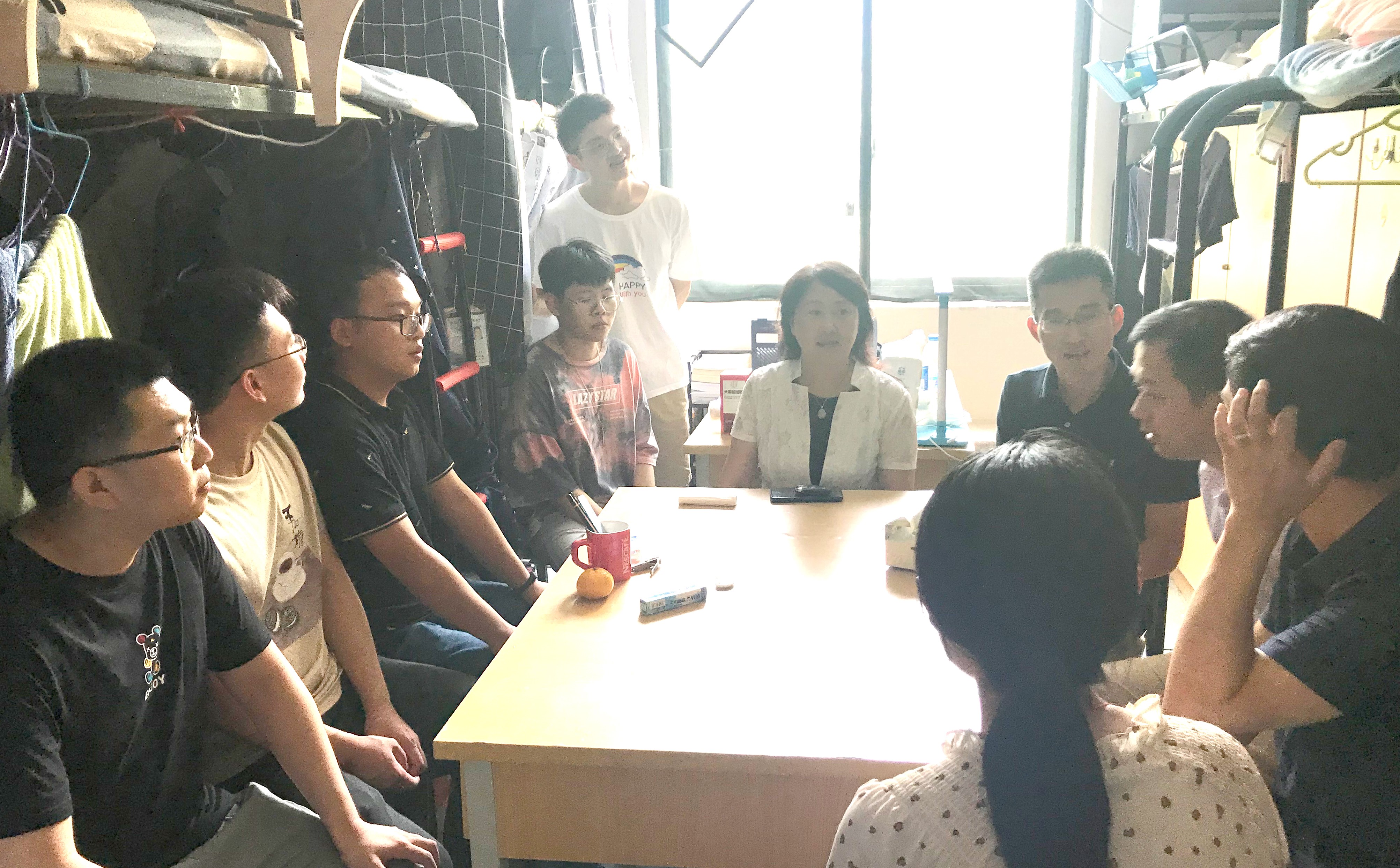 王媛院长一行还与学生骨干进行了座谈交流。她详细了解了2017级本科生各个班级的开学返校情况和同学们的学习生活情况,她认真听取同学们面临的生活学习问题,并逐一解答。王媛院长赞扬了同学们朝气蓬勃的精神面貌,并鼓励大家们勇于拼搏,迎接挑战,争取在学习、科研、创新竞赛等各方面取得新的成绩。