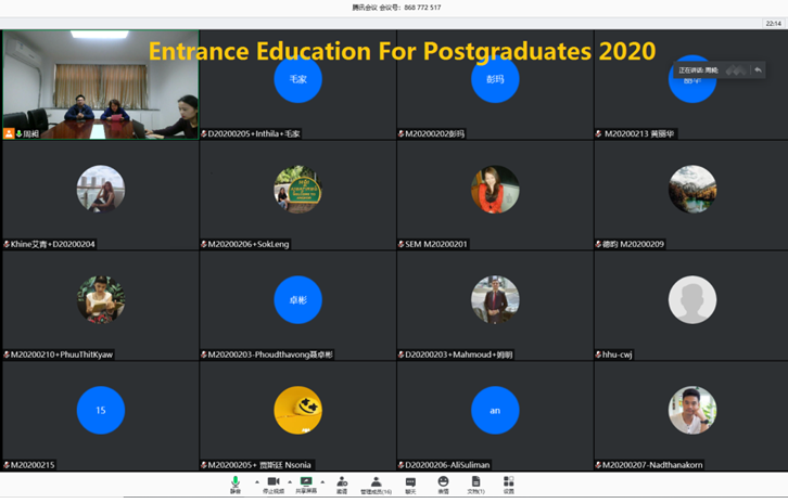 10月21日上午,葡京娱乐场 举行了2020级留学研究生新生入学教育会线上会议。葡京娱乐场 副院长方国华教授首先致辞,向各位留学生进入葡京娱乐场 开始研究生阶段的学习表示祝贺和欢迎,希望留学生新同学热爱本专业,加强专业知识学习,在积累知识、运用知识、创新知识的道路上,学会发现问题和思考问题,逐渐从知识的积累者变成知识的运用者和创造者。葡京娱乐场 国际合作与交流办公室主任周领教授从葡京娱乐场 的学科概况、人才培养、国际合作等几方面为留学生们做了详尽的介绍。研究生教学秘书周昶老师就同学们关心的课程学习、导师安排等事宜做了解答。2020级留学研究生入学教育会圆满结束。