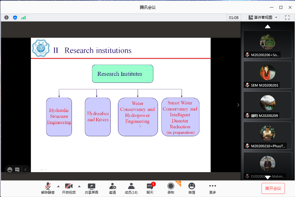 今年葡京娱乐场 共招收了23名留学生,分别来自乌兹别克斯坦、埃及、缅甸、老挝、尼泊尔、巴基斯坦等国家,他们将进入水利水电工程、水工结构工程和水力学及河流动力学专业进行硕士阶段、博士阶段的学习。受疫情防控影响,部分2020级留学研究生同学无法到校学习,2020年秋季留学研究生课程将继续进行线上教学。(周昶)