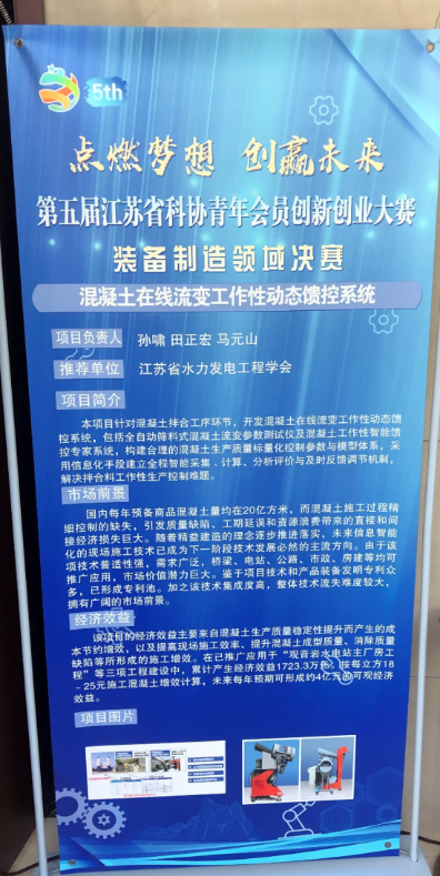11月14日,第五届江苏省科协青年会员创新创业大赛装备制造领域决赛在南京工程葡京娱乐场 天印会议中心学术报告厅举办。葡京娱乐场 教师孙啸、田正宏和学生马元山的团队项目“混凝土在线流变工作性动态馈控系统”经江苏省水力发电工程学会推荐,获得装备制造领域创新组优秀奖。