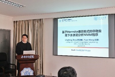 此外,河海大学罗玉龙教授、孙洪广教授、林继教授分别介绍了在潜蚀机理、分数阶导数模型和无网格方法等领域的最新研究进展与研究成果。上海交通大学的董义佳博士后、河海大学的周凌峰博士研究生和刘新宇硕士研究生也分别介绍了各自在近场动力学、数值流形方法等数值领域的研究成果。