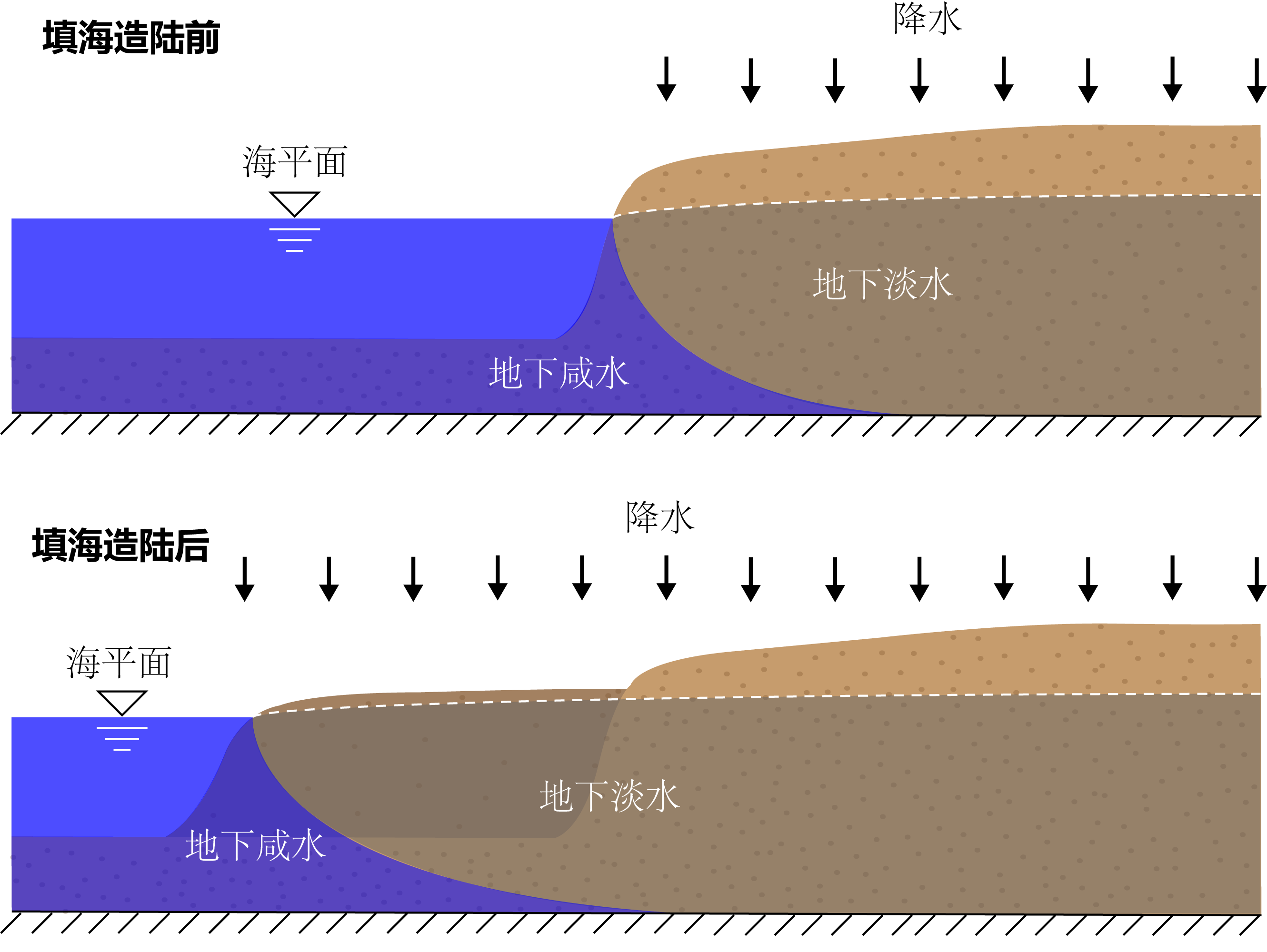 大规模的填海造陆新增了宝贵的土地,经济效益显著,但对海岸带系统产生巨大影响。目前,对填海造陆影响的研究主要集中在填海后海域水动力条件的变化、泥沙沉积分布以及滨海生态环境的变化等,而对填海后海水入侵与地下水动力系统影响的机理尚缺乏充分认识。张嘉等考虑了填海造陆区域底部基础的渗透性,构建了更符合实际情况的滨海含水层概念模型,研究了不同填海范围不同填海材料对于海水入侵及地下水水位的影响并且推导了能够快速定量填海前后海水入侵及地下水水位的解析表达式。研究成果可为评估与预测填海造陆对地下水系统的影响提供重要的理论基础和科学依据,对滨海含水层的保护具有重要的学术价值和实际应用意义。