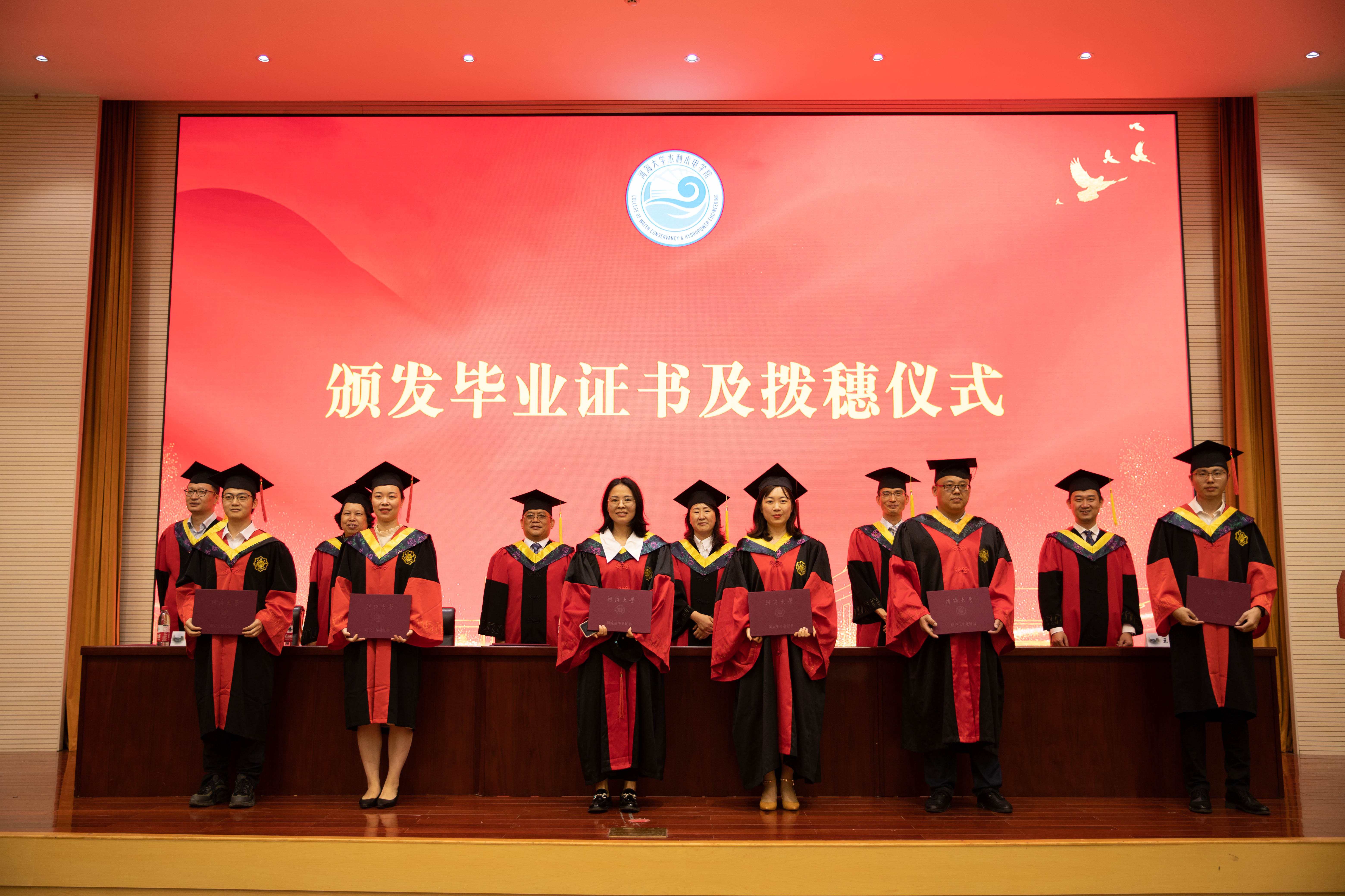 毕业典礼上,葡京娱乐场 领导班子全体成员为毕业生颁发毕业证书,扶正流苏并合影留念。院党委书记任旭华院长王媛副院长方国华校友联络员颁发聘书领导班子向毕业生赠送校名、院名纪念品。