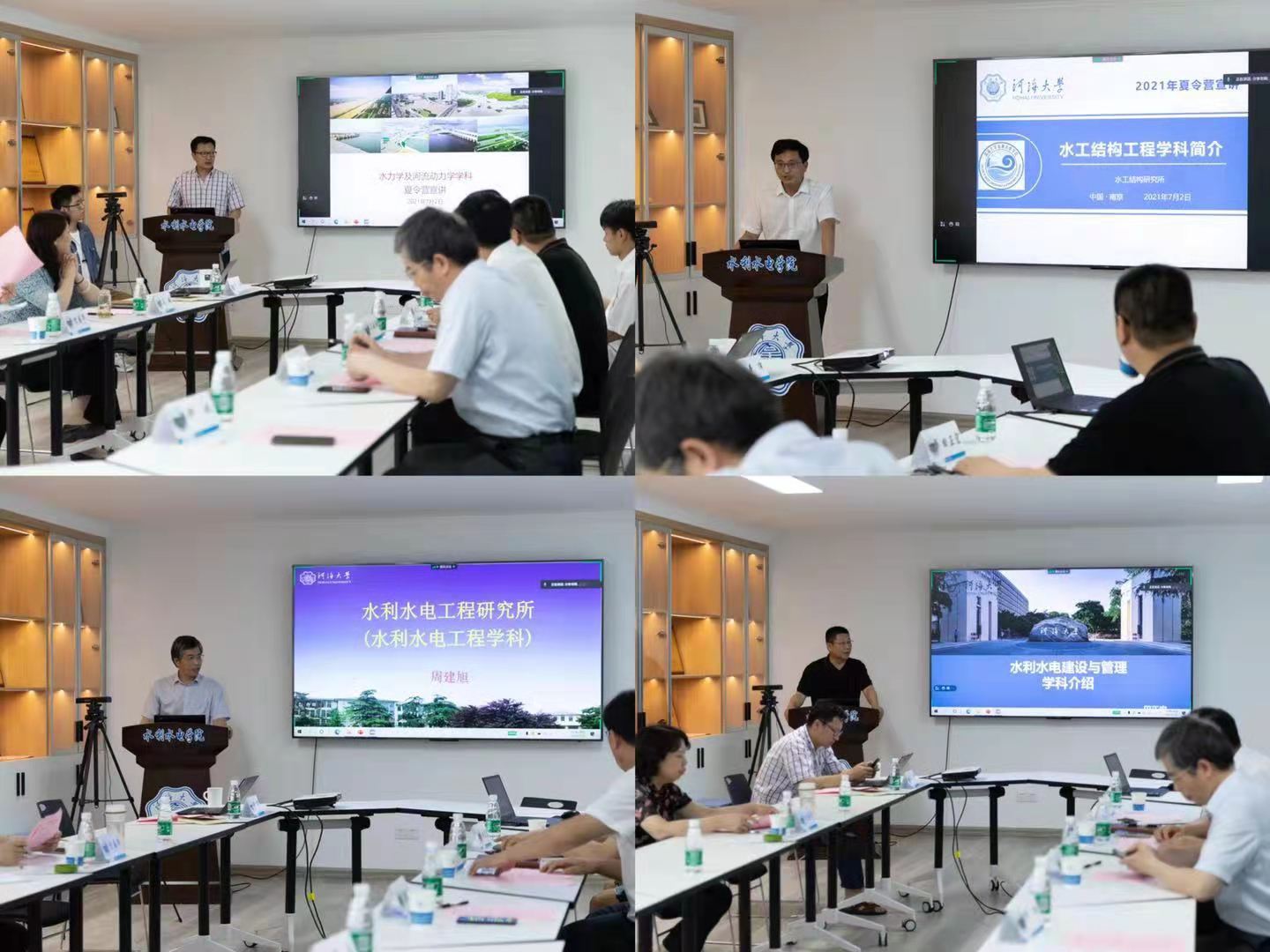 学科及导师团队介绍环节由方国华副院长主持。辛沛、岑威钧、周建旭、田正宏四位教授分别代表所在学科向营员们介绍了水力学及河流动力学、水工结构工程、水利水电工程及水利水电建设与管理等学科专业的基本情况。肖洋、杨校礼、辛沛、王惠民、王玲玲、赵二峰、任杰、毛佳、王柳江、徐力群、徐磊、高玉琴、俞晓东、毛劲乔、周领、孙啸等16位老师分别代表所属科研团队向营员们介绍了研究方向及团队导师情况。