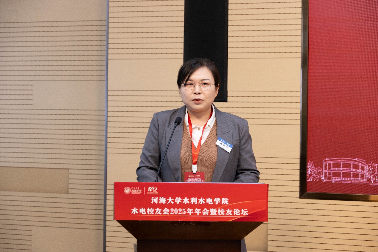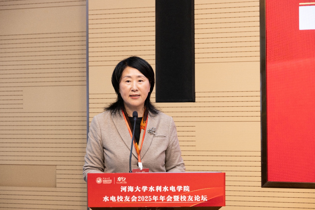 王媛院长首先代表葡京娱乐场 向长期以来始终心系母校、支持学校葡京娱乐场 建设与发展的各位校友致以最衷心的感谢和最崇高的敬意!她表示,葡京娱乐场 始终以"治水兴邦"为己任,紧密围绕国家重大战略需求及世界科技发展前沿,制定学科发展的战略规划,在科技创新、人才培养、国际交流等领域取得了一定的成绩,以争创一流的毅力和意志,不断深化内涵式高质量发展。期盼校友们一是坚守初心,勇担使命,在水利事业发展中再立新功。二是常念母校,情系葡京娱乐场 ,在产学研合作中深化共赢。三是薪火相传,引领后学,为国家强国建设、民族复兴伟业贡献河海水电人的智慧和力量。