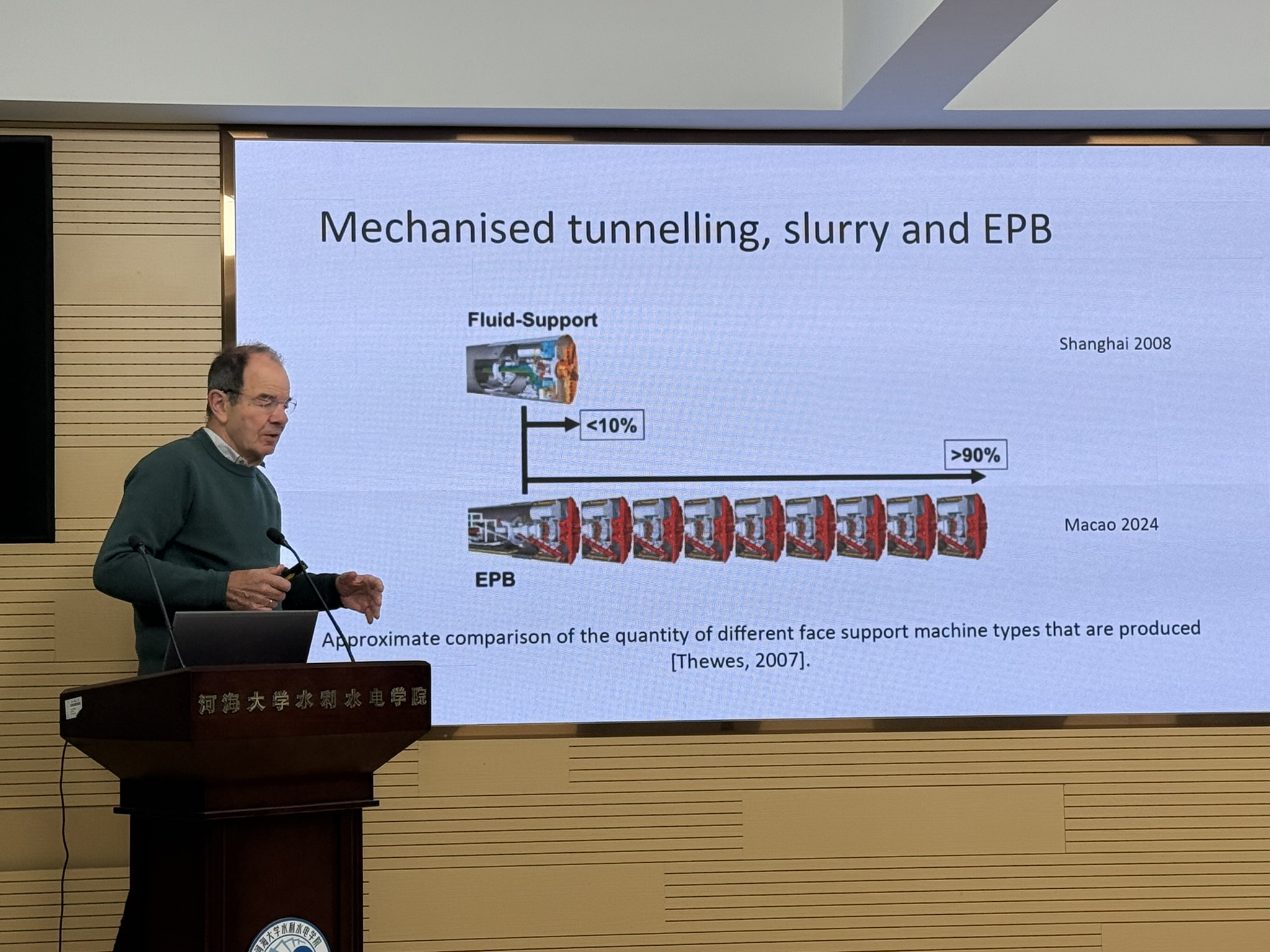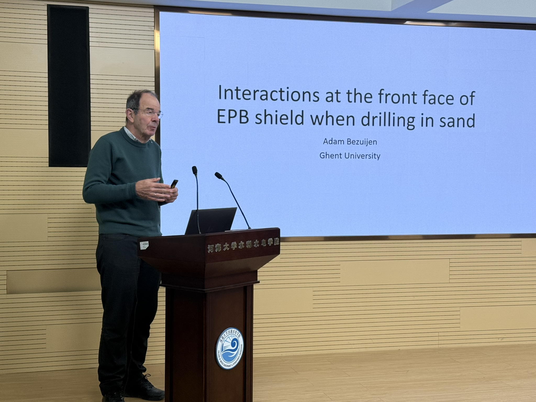 2025年11月19日上午,葡京娱乐场 在水电馆301会议室成功举办学术研讨会。应王媛教授邀请,比利时根特大学Adam Bezuijen教授访问我校,并作了题为“砂土地层盾构掘进掌子面相互作用机制”的学术报告。本次报告旨在深化对复杂砂土地层中盾构掘进机理的认识,揭示“土体-盾构-地下水-泡沫”相互作用机制,为盾构掌子面精细化控制及施工安全风险防控提供科学依据和技术支撑。