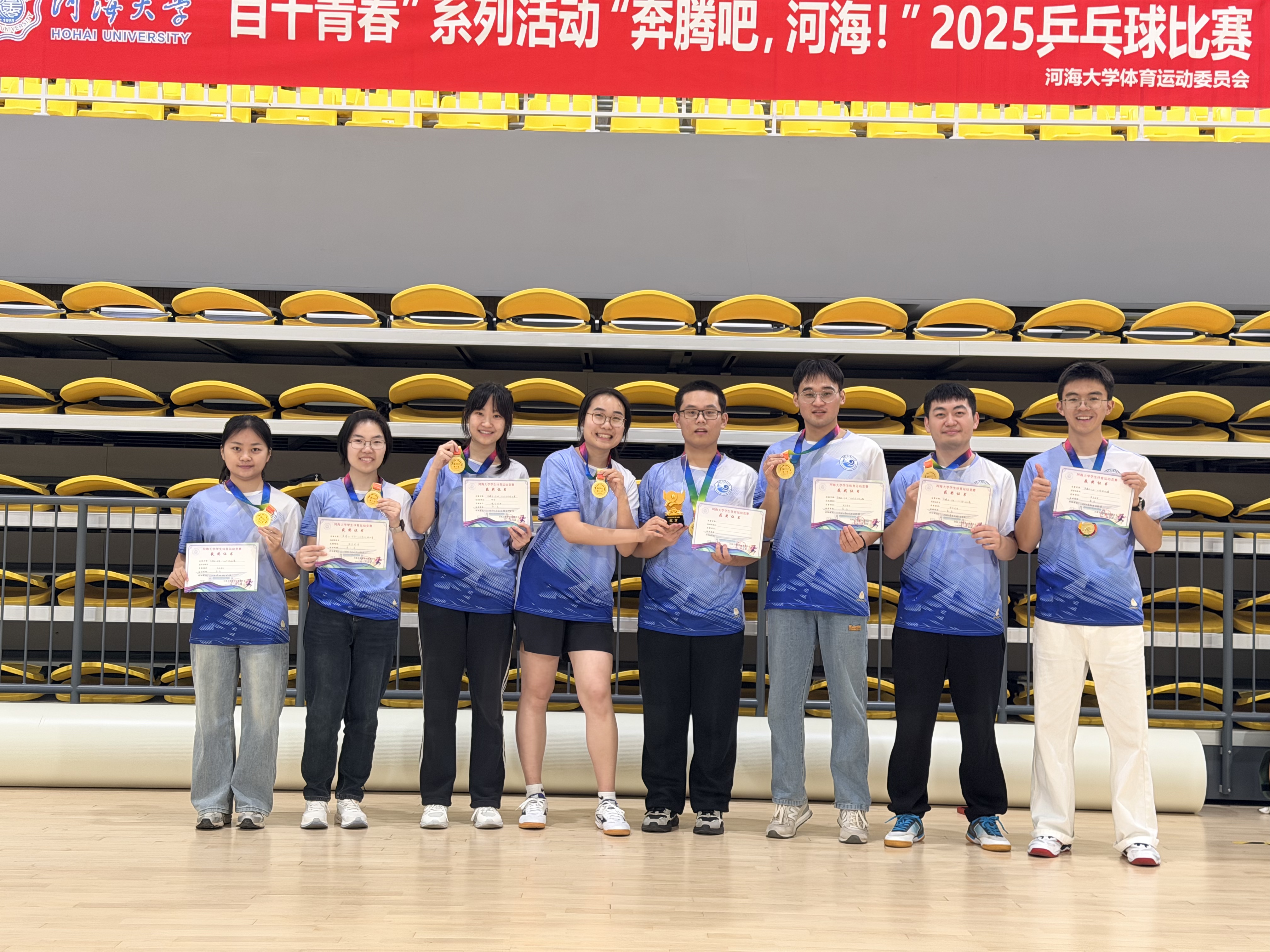 12月20日,“奔腾吧,河海!”2025年乒乓球比赛在常州校区体育馆火热开展。赛前通过院内选拔,葡京娱乐场 本科生郭轩毓、研究生赵旭、张姚、王岩博、邢容、戴诗菡、李奕函、彭小倩作为队员参赛,经过一天的激烈竞争,葡京娱乐场 乒乓球队员们斗志昂扬,一路披荆斩棘,成功卫冕夺冠。
