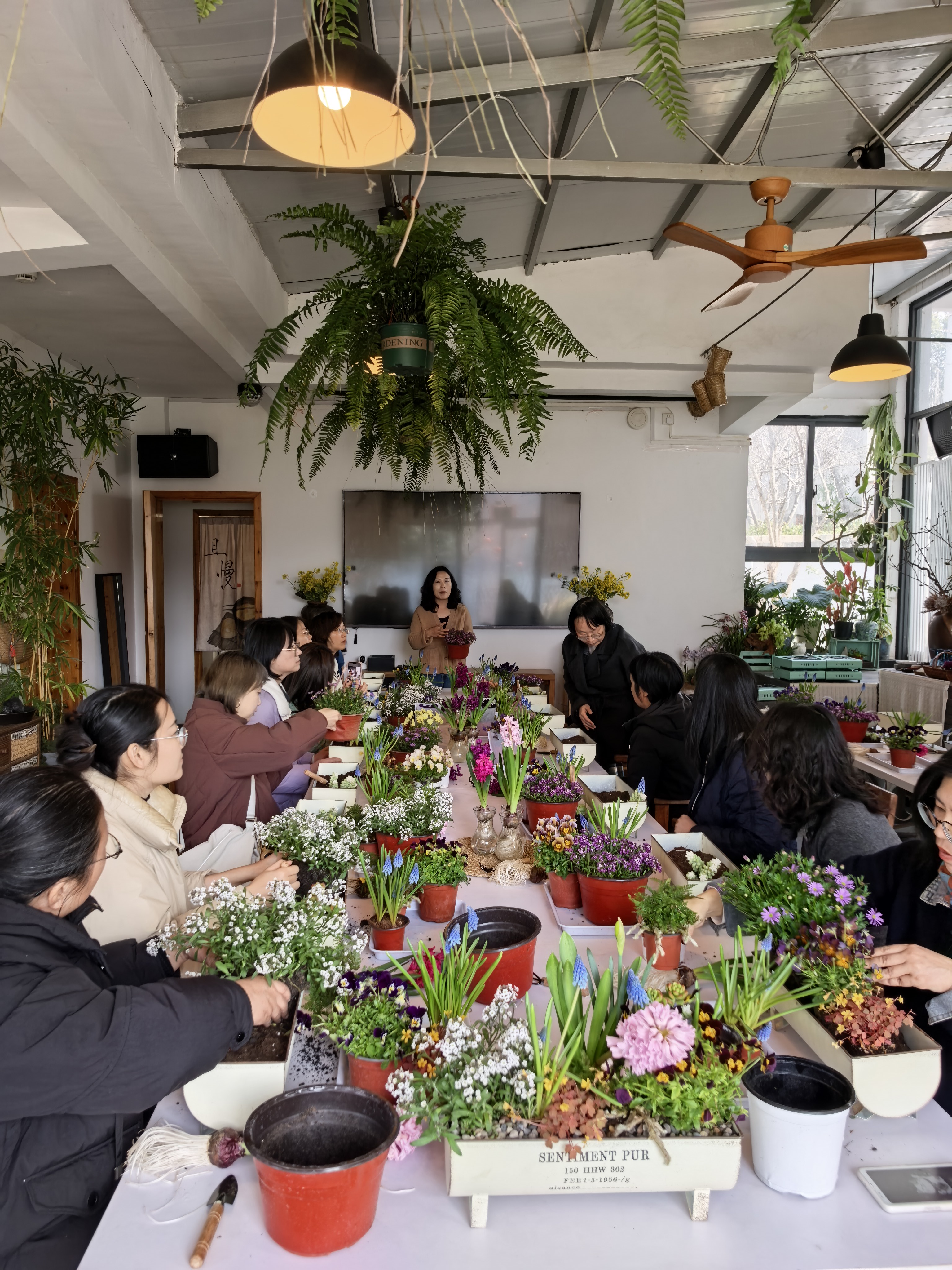 随后,大家移步至雅致的花艺空间,在专业老师的指导下开展创意花组盆栽活动。从挑选花材、搭配色彩到布局造型,女教职工们认真聆听讲解,亲手将风信子、雏菊等春日花卉与绿植巧妙组合,打造出一盆盆独具匠心的微型花园。指尖流转间,不仅完成了一件件充满生机的花艺作品,更在慢节奏的创作中舒缓了工作压力,收获了满满的成就感与幸福感。